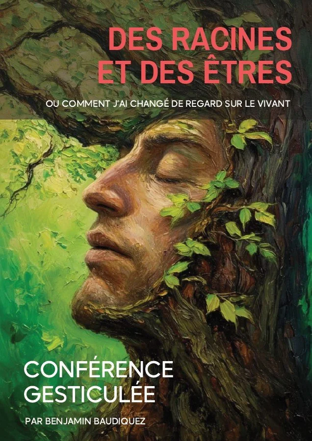17h15 à 18h45 – Conférence gesticulée « Des racines et des êtres ou Comment j’ai changé de regard sur le vivant« de Benjamin Baudiguez